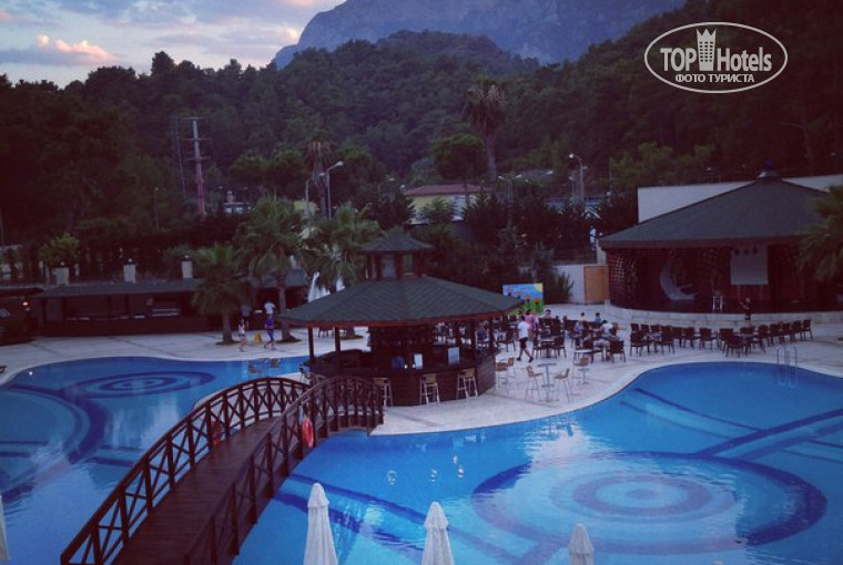 Почти вся территория отеля это большой бассейн, по глубине он разный, есть 2 горки. Так же есть маленький бассейн для малышей.Для детей есть детская площадка, там были качели, домики,горка. На теннисном корте дети вечером играли в футбол, там же проходила пенная дискотека с живой музыкой.