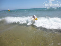 Пляж возле отеля мне не понравился, грязноватый, но вход в море хороший. И зонтиков на нем все время не хватало. Поэтому мы ходили на другой пляж в 5 минутах, там волейбол проводят, чисто, ребенку можно куличи лепить, в море небольшие волны, дочери нравилось в круге плескаться на волнах.