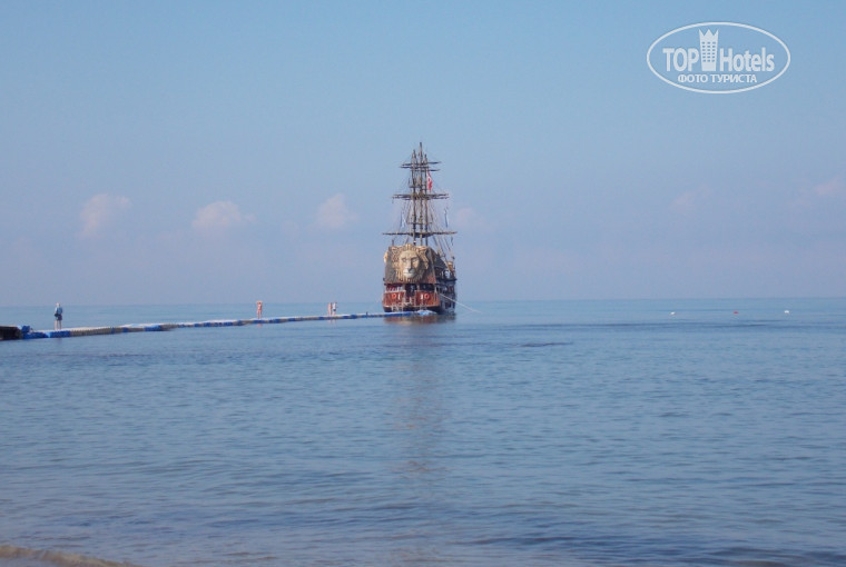 У пирса стоит большой красивый пиратский корабль. Ребята на пляже (Руслан и Али) продают туры на него. Стоит тур очень недорого, я для начала взяла короткую экскурсию с 14 до 17 часов по всему побережью Сиде с просмотром морских черепах, купанием в море и пенной дискотекой. Было очень весело и красиво. Ребята на корабле выглядят, как настоящие морские волки)).