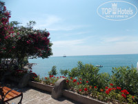 Пляж находится прямо на выходе из отеля, через сад. Море у пляжа прозрачное и чистое, чуть поодаль от прибрежной линии находятся камни, заросшие водорослями и ракушками - там можно понырять и по изучать подводный мир.