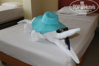 Итак..Тиа Хайтс... сначала расскажу именно об отеле. Выбирала я его исходя из следующего: хороший пляж и море (заход, кораллы), наличие горок в бассейне (а тут же целый аква парк!), просторный номер. Потратили ровно 90 000 (с доп.расходами на топливный сбор). Из аэропорта отдельный автобус прямо до Тиа, время в пути около получаса. Заселили сразу (заехали в 19 часов). Предварительно писали Алене- хотельеру, пытались забронировать ближние к главному корпусу Дюны, нов итоге дали корпус 56, это третий ярус, метрах в 700 от главного входа, сначала показалось далеко, но быстро привыкли, не самый дальний корпус, если нет проблем с ногами - можете бронировать спокойно. Вид номер пошарпанный, но чистый, вся техника (фен, кондиционер, телевизор, лампы) работала исправно. Номер просторный, стояло 3 кровати, а полотенец было на 2-х человек, позвонили на ресепшн, через 5 минут и доп.кровать поставили и полотенца принесли, в общем тут проблем не возникло. На первом ужине оценили еду и ресторан (хотя потом и называли его столовой, как оно и есть). Чистота ресторана колеблется между 3-кой и 4-кой. Хотя грязную посуду уносят быстро, но скатерти очень уж грязные (даже стиранные все равно со старыми пятнами) и полы почти всегда какие то липкие, замызганные, что не мудрено- посуда бьется каждую секунду, сидишь ешь, хоп около тебя арбуз хлопнули, за соседним столом чай пролили и т.д. Но еда нормальная, разнообразие вопрос спорный, мы предпочли есть знакомую нашим организмам пишу (макароны, рис и картофель были всегда, как и курица с говядиной), овощи брали только свежие (дольки огурцов помидор). Слышали рассказы о жутких отравлениях от "непонятных" салатов 9правила общепита во всех странах одинаковые- бери куском!! В салаты перерабатывается всё что было недоедено накануне, а чем это заправляется вообще вопрос). Напитки- кола/7ап/миринда в розлив, соки типа "зуко, фреши по 2 доллара, чай/кофе, а так же алкоголь- пиво, вино и куча всякой ерунды типа рома, виски, ликера местного производства, которые не жалеют и от души наливают русским в стаканы, многие даже просят "поменьше-поменьше!" Завтрак- море выпечки, йогурты и мюсли, сосиски, омлет, яичница, блинчики, салатный стол. На обед и ужин всегда есть суп (1 вид). Есть "детский" стол... хотя меня он скорее напугал, но в этой зоне много семей питалось, просто там все реально пресное и пюреобразное, наши 6-тилетки ели уже обычную еду, а от пресной каши плевались. На ужин всегда работает мангал на улице, обычно там жарят курицу, но бывают кеббабы. Разок за заезд раздавали крабов, попробовали- не впечатались, сильно много есть не стали, чтобы не травануться. Мы кушали на 1 этаже, но я разок поднялась на 2-й этаж, там огромная территория (по сравнению с 1-м), кстати из-за этого был неприятный инцидент, о котором я расскажу позже.