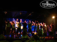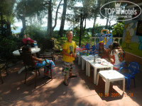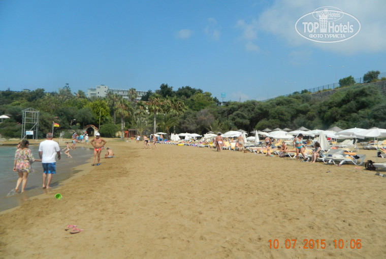 Первый раз отдыхала в Турции, до этого отдыхала на Кипре и в Болгарии. В целом отдых понравился, зеленая ухоженная территория, пляж рядом и не через дорогу. Но сервис вряд ли можно считать соответствующем уровню 4-ки, твердая 3-ка, но с бесплатными лежаками и полотенцами. Опишу сначала минусы. Бронировали 2 стандарта на 2 семьи, но поселили нас со словами "сюрприз" в 2-комнатный люкс № 619 на 6-м этаже. Видимо, мы должны были обрадоваться общему туалету в приложении к виду на море. Одна из этих 2 комнат оказалась проходной (попросту коридор) с несдвигаемым комплектом из 2-х раскладных кресел, одно из которых стояло прямо напротив кондиционера. Вместо тумбочки что-то типа табуретки, гардероба для одежды в этой комнате не было вообще. Попытаться заснуть на кресле не получилось, в спину врезалась какая-то деревяшка из раскладного кресла, ребенок мой ничего не почувствовал, но для взрослого тяжелого человека ощутимо неудобно. Пришлось срочно настилать пледы, полотенца и т.п. После ругани с персоналом с ресепшена выяснилось, что номеров стандарт на сегодня нет, но завтра обязательно будут. На следующий день мы все-таки переехали и смогли разобрать чемоданы. Дали нам 2 номера - 1 с видом на море, 1 - во двор. К номерам с видом на море прилагается шум от дискотеки из соседней Алары-5 допоздна, от которого не спасает даже закрытый балкон, так что если вы жаждете тишины и для вас вид на море - не главное, сразу скажите об этом персоналу на ресепшен. Балкончики в номере небольшие. Также тесноватые душевые кабинки, в люксах они больше. В стандарте в душе смесителя нет, 2 краника по старинке - с холодной и горячей водой. Из раковины иногда неприятно пахло. В туалете хорошо слышно, о чем разговаривают в соседнем номере. Правда, в самом номере звукоизоляция неплохая, или нам соседи хорошие попались :) Кондиционер шумный, но потом привыкаешь. Питание разнообразным не назовешь- кто-то тут писал про 3 каши и черешню. Что-то мы этого не заметили. Каша на завтрак была одна, как и суп-пюре на обед (на любителя). Из фруктов видели только арбузы, иногда был виноград, а так часто лежали недозревшие сливы, персики и груши. Из горячих блюд - 4 гарнира на выбор, плюс мясо, рыба и овощи на гриле, пицца. На экскурсиях разговаривала с туристами из других отелей, приехавшими не в первый раз в Турцию, все отмечали, что питание стало хуже в этом году, видимо, пытаясь оставить оптимальный уровень цен на туры для туристов из России при падающем курсе рубля, турки пытаются сэкономить в первую очередь на еде. К сожалению, в столовой не нашли администратора. Когда ездили на экскурсию рано утром, хотели взять в столовой 2 булочки непроснувшимся детям и горстку лукума, чтобы позавтракали по дороге, все это увидел какой-то пожилой официант-коротышка и так заорал что-то по-турецки, что и детей и нас перепугал. Попытки объяснить, что едем на экскурсию и на обеде нас не будет, не увенчались успехом, все 5 минут завтрака ходил кругами вокруг нашего стола, пока не забрал в помойку недоеденный завтрак, остался очень неприятный осадок на душе после этого инцидента. В Болгарии у нас проблем с этим не было, когда нужно было взять еду (приболел ребенок) - подходишь к администратору и объясняешь причину. Сразу говорю, что ланч-пакеты при раннем выезде можете не брать - там вчерашние несвежие овощи, джемы, плавленный сыр и 1