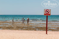 Пляж - заход в море частично огорожен буйками, так как на дне сплошные каменные наросты с кишащей там во время отлива живностью, хотя туристы с удовольствием там выискивали кого-то, когда дно обнажалось. Заход в море там, где можно сначала каменисто-песчано-галечный, затем идёт песок, на одном участке песок чёрный- видимо с примесью салярки от катеров. В целом пляж далёк от идеала, единственный плюс- много кораллов( мёртвых) с живущими там многочисленными рыбками.
