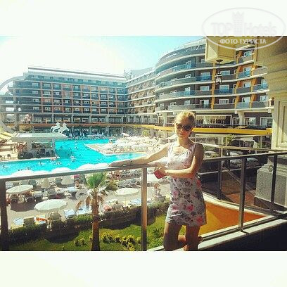 Здравствуйте! Мы отдыхали с 4.07.15 по 17.07.15!С предыдущем отзывом согласна,но хотелось бы еще добавить.Анимация.Очень скучная, аниматор ужасный,в основном говорит по турецкому,но и иногда по русски и то не с радостной ноткой.,девочки стараются но не то все.(даже сами говорят что анимация плохая).Заселение происходит в 14.00 ну или чуть-чуть с задержкой на минут 15.,чаевые у нас никто не выпрашивал и сами мы не собирались давать.Wi-fi ловит очень хорошо в номере. Алкоголь.Вино растворимое нам признались,но есть и настоящее в ресторанах. Коктели - на любителя,пиво хорошее. Еда.Много всего,выбрать можно.Супы не вкусные(их всегда 2 вида),попадались продукты не свежие,пахли кислятиной и на вкус тоже самое.(остается что не съедается, и они по-второму кругу это выставляют).Лучше брать то что при вас готовят:) Фрукты.Арбуз,дыня,слива,персик,яблоки(2 вида ).Сладкое.Очень много всего,но все очень сладкое,перебарщивают с пропиткой в сиропе.Посуда действительно плохо промывалась,приходилось всегда смотреть чистая или нет,и самим еще протирать салфеткой. Аквапарк. Очень хороший,но не хватало ватрушек.МИНУС что когда приезжает машина и выгружает из погребной ямы всю гадость,очень жуткая вонь,купаться не возможно и не охота уже.ПРОСЬБА лучше не вызывать машину когда люди отдыхают и наслаждаются приятным в момент катания на горках.!!! Спа-центр.Девочки очень хорошо выполняют свою работу.Спасибо им!Уборка.Не всегда хорошо убирались,в нашем номере 2105 в санитарной комнате были муравьи.Постельное белье иногда попадалось в пятнах( но вы можете это все собрать и им отнести на обмен).,Полотенца менялись каждый день.(но лучше взять еще и свои).Теннис настольный.СТОИТ ЗАМЕНИТЬ РАКЕТКИ И СЕТКУ,играть не выносимо.Теннис большой.Корт хороший,играть можно,Футбольное поле тоже хорошее!Боулинг платный 13$ за 30 минут,если 1 игра то 5$.Кальян платный,хамам платный НЕ ВЕРЬТЕ что написано бесплатно.Сладкая вата платно,поп корн платный,автоматы детские платно.Спорт зал,хороший,но уже есть сломанные тренажеры. Диско клуб.Работает с 00.00 до 02.00.Пахнет сыростью,душно,музыка играет турецкая в основном.,лучше не пожалеть денег и съездить в городской клуб.На территории отеля каждый день одна и та же музыка звучит в одном и том же порядке.,очень надоедает-еще и турецкая в основном.Если не обращать на самые какие то мелочи то отдохнуть можно,но кто привереда то не стоит и ехать туда.