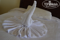 СЕРВИС: Первый раз я вижу, чтобы уборка в номере была после 12 дня..т.е. не когда утром все на пляже, а в самую жару, когда все в номерах..в итоге приходилось потом часов в 5 просить, чтобы убрали или сидеть это время 12-13 дня в лобби..что тоже не очень удобно! Сама уборка, только так называется. Меняют полотенца каждый день и ставят бутылку с водой. И ВСЕ..это уборка! т.е. постельное просто переварачивают, разглаживают руками и типо новое..мусор под ногами, на входе песок и камушки с пляжа. Никто не подметает..Муж оставил один день бакс, в надежде, что это хоть поможет и у нас сделают уборку, но это помогло лишь скрутить лебедя и все. В общем ресторане сервис в целом не плох, убирают быстро, меняют приборы и относительно чисто, НО у них проблема с салфетками бумажными! Они кладут их только по одной, что очень не удобно..Первый раз я услышала фразу, что нет пляжных полотенец, надо подождать пока кто-то сдаст! ЭТО вообще нонсенс!