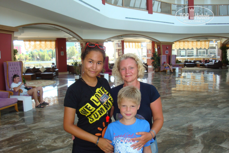 В номере интересный дизайн,новая мебель и две удобные кровати. Сначала смутило кривое зеркало в ванной комнате-оказалось,что это тоже элемент дизайна-оригинально! Душ отгорожен стеклянной перегородкой и брызги летят на пол,но и эта проблема решалась- брошенным полотенцем для ног,которое менялось при уборке номера.Кондиционер и сейф работали исправно. Кто-то писал о воровстве из номера,у нас ничего не пропадало,хотя практически все вещи и техника лежали на виду(за исключением естественно денег и документов-всё в сейфе).Убирался номер каждый день,полотенца и постельное бельё меняли,но скрупулёзным подсчётом сколько раз и когда, мы не занимались-не для этого приехали. Наверное всё зависит от уборщиц! Чаевые оставляли каждый день,но лебедей и слонов из покрывал и полотенец не дождались и честно говоря особо не расстраивались по этому поводу. Мыльные принадлежности и бутылка воды пополнялись ежедневно. С питанием проблем тоже особых не возникало-еды море на любой вкус:мясо,рыба,разных закусок,гарниров,зелени,овощей и всякого фастфуда полно.Готовили вкусный гриль,но чтобы не стоять в очереди приходили на ужин немного попозже и всего хватало.Очень вкусные арбузы, яблоки,апельсины и,если спелые,персики.Но персиков не всегда всем хватало,т.к. некоторые голодные туристы на семью из трёх человек набирали по две тарелки (кстати это касается не только наших соотечественников,но и представителей других стран!) Сам отель красивый,большой,чистый.Лифты стеклянные ,сыну нравилось рассматривать с высоты окрестности,но есть и минус-лифт слегка тормозной,реагирует на все нажатые кнопки вызова на всех этажах,отдыхающие вызывали лифт и не дождавшись,уходили.Но рядом находится лестница и можно воспользоваться ею.Большой бассейн,много лежаков,рядом бар.До моря 5 мин ходьбы пешком или 2 мин на тракторе . Пляж не очень большой,лежаков хватает всем,в баре можно перекусить и есть напитки и пиво.Вход в море песок и галька-рекомендую специальную обувь.Если сами отдыхающие будут свои тарелки,стаканы и окурки выбрасывать в урны,а не под лежаки и в песок-то будет чисто! Персонал отеля дружелюбный,почти все говорят и понимают по русски,никакого хамства. Видно,что люди стараются работать достойно.Менеджмент отеля везде присутствует,чувствуется постоянный контроль.Хотелось бы особо отметить двух чудесных женщин из отдела по работе с гостями, Конул и Шерифе-море доброжелательности и всесторонняя помощь в любом вопросе! Анимация неплохая,кому нужен был активный отдых,тот его получал.Очень понравилась милая девушка по имени Саида-ей большой привет от моей жены Ольги! Краткий итог: достойный молодой отель,отдых удался,море позитива и положительных эмоций!