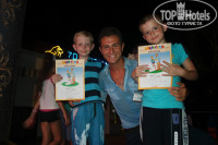 Отдельное спасибо и восхищение анимацией! Особенно детские аниматоры. Дети были все время заняты, каждый день различная программа для детей: делали и запускали воздушных змеев, стряпали печенье, был день природы, день спортивных игр и много еще всего. Мальчишки с удовольствием в 10:00 бежали в мини-клуб. Да, чуть не забыла написать про сам мини-клуб, их у отеля два: один на территории возле номеров, а второй на пляже. Для детей там созданы все условия: горки, качели, бассейн, навесы и прочее. В 20:30 мини-диско для детей, малышам это нравится. Видели бы вы как серьезно они танцуют! После мини-диско, тем детишкам, кто занял призовые места во время соревнований, вручают дипломы. Мои привезли домой родителям по четыре диплома. Большое спасибо всем детским аниматорам, а особенно Анечке и Саше, мои мальчишки в них просто влюбились!