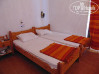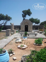 Приехали мы примерно в 22:00. Встретил хозяин отеля Янис. На английском языке рассказал нам правила проживания в отеле, выдал ключ от отеля (т.к. сам отель закрывается в 23:00), ключ от номера, пульт от кондиционера и подарил нам бутылку вина (комплимент молодоженам).