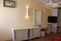 Комната нашего отдыха была большой, свободной. На мебель абсолютно не обращали внимания. Поразила очень уютная большущая кровать. Кондиционер работал исправно, регулировался. Телевизор плазменный BEKO, но смотрели новости пару раз. Ванная комната в кафеле с полным набором принадлежностей . В спец. коробочке набор швейный, ватные диски, ушные палочки и пилочка для ногтей. Кстати , шампунь хорошего качества , а кондиционер для волос с характерным мужским ароматом. Кому не хватит средств для душа, можно самому взять в тележке с инвентарем. Фен странный, напоминает вентилятор, брала свой. Тапочек, халатов не выдают.