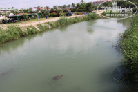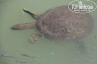 Немного правее в сторону от нашего пляжа можно пройтись к мостику, с которого зеваки подкармливают стаю рыб в сочетании с большими черепахами, якобы хищниками.