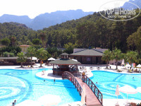 Первое впечатление об отеле самое положительное, а иначе и быть не может, приехали с приподнятым настроением, и все нам нравится. Потрясающий вид из окна, горы покрытые лесным массивом, чистейший воздух и счастливые лица туристов, хотя не, чет загнул я с лицами. Территория отеля зеленая и ухоженная, но прогуляться по ней, вам вряд ли удастся.