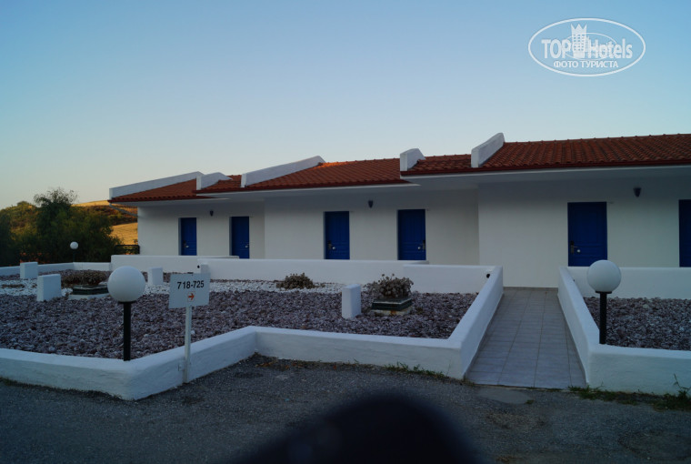 Территория отеля большая, всего мы насчитали около восьми корпусов, но их может быть и больше. Мы жили в 6 корпусе. Wi-fi в номере почти не ловил приходилось ходить в бар - это, пожалуй, единственный минус в отеле, не считая много жуков, пауков, богомолов и прочих насекомых :) В номере убирались каждый день, постельное белье меняли раз в три дня, полы мыли почти каждый день. Полотенца в номере меняли каждый день, мини бар за дополнительную плату. Полотенца на пляж можно взять на рецепции - 5 евро за все время проживания и депозит в размере 10 евро. Мы ходили на пляж в деревушку Неа Рода. Она находится в 20-30 минутах ходьбы от отеля. Пляж там намного чище, чем отельный. Возле пляжа находится отличное кафе - оно самое первое, отделено деревянным забором. Персонал говорит на русском, есть русское меню. После трех обедов в нем хозяин отеля уже знал нас :) Порции там большие, еда вкусная, а самое главное - недорого.