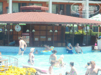 Здравствуйте! Считаю своей обязанностью оставить отзыв об отеле, т.к. при его выборе прочитала миллион отзывов и остановилась именно на "Хризантеме". Все, что пишут ниже в положительных отзывах неоспоримая истинна, повторятся не буду, а в плохих отзывах, мне кажется, это получается по стечению обстоятельств, в зависимости от индивидуальности людей и ,конечно же, все зависит от настроения отдыхающих. Теперь по порядку: плюсы - большая территория, чистая и ухоженная, есть отличная детская площадка (отдыхали с детьми 3.5 и 8 лет), обоим детям было весело и играли на ней каждый день, она немного в тени, т.ч. и в полдень не сгорят дети, много зелени и деревьев, цветов тоже, на заднем дворик очень красивый фонтан, у нас, к слову, номер был с видом на улицу, все отлично, видно фонтан, соседний отель, улицу и вдаль горы, шум был примерно до 2 ночи, но со стеклопакетами не мешает, однако, шумоизоляция действительно плохая со стороны корридора, пару дней терпели пьяных немцев по соседству и это, пожалуй, едиственный минус отеля. Если посмотреть фото на этом сайте, все точь в точь как в реале. До моря минут семь-десять с 3-хгодовалым рнебенком. Анимация отличная, но я как то не принимала участия - лень))) Бассейн вообще просто супер, много уровней, вода разной температуры,т.к. в зависимости от глубины прогревается по разному, но может купаться как малыш так и взрослый, самая глубокая часть около 2 метров, самая низкая - 50 см. Кстати, к бару у бассейна можно с одной стороны подойти, а с другой подплыть из воды))) Еда - много всего, но немного наскучило через пару дней, но это культура питания, мы не привыкли есть все на гриле или в большом количестве растительного масла, но за пару недель отдыха ничего страшного не произойдет, мои дети в еде привереды, но голодными не ходили, уминали и супчики, и пирожные с муссами и выпечкой(кстати их там на любой вкус и цвет), и картофель фри и много чего что можно и нельзя)))) Я еще и в номер умудрялась немного йогурта и фруктов пронести, хотя везде написано, что нельзя и штраф большой... Еще мы покатались сами на экскурсии в Несебер и Бургас, ничего сложного, пошли на обычную остановку и на автобусе доехали, кому финансы позволяют, можно сразу за углом снять машину на день (от 30 евро), прогулятся пешком тоже интересно, ведь отель почти в самом центре курорта. Обязательно сходите в супермаркет "Младость" (навигатор в помощь или местные подскажут, недалеко от отеля), цены там ну очень приятные и можно запастись гостинцами. В июле море было действительно не чистым, нам повезло пару раз был шторм и после него вся муть уходила. Слышала, что бывают в это время вспышки кишечных инфекций, нас Бог миловал и по близости никого с признаками не видели. Еще хочу написать о номере и приезде в отель: номер мне очень понравился, т.к. площадь около 35 кв.м. это уже супер для семьи из 4-х человек, убирали чисто, полотенца меняли каждый день (я ложила на пол в ванной и все), постель меняли раз в два дня, тож неплохо и убирали хорошо, ну, лебедей, конечно, тока за чаевые крутили, но это на любителя, мы иногда оставляли пару копеек с белорусской шоколадкой))) Номер был на 3-м этаже, примерно над рецепцией, поэтому в номере вайфай ловил отлично. Мы тоже приехали рано утром около 8 часов, но морально я была готова к позднему заселению,т.к. агент Тез Тура предупредил еще до отдыха, что от