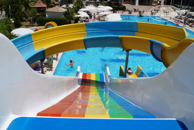 Бассейн. Бассейн был удивительно чист,ничего лишнего в нём,как обычно бывает,не плавало. Горки закрывались на время обеда и вечером. У бассейна всегда можно было найти свободный лежак,как под солнцем,так и в теньке.