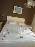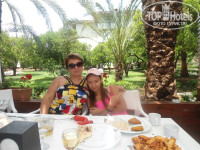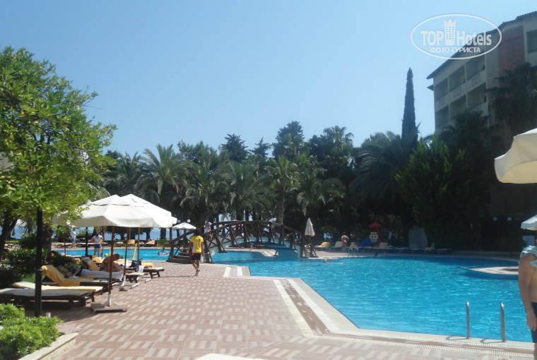 Добрый день! Отдыхали в отеле в конце мая с ребенком 12 лет и коллегой по работе. Приехали в отель около 11 вечера. Сразу разместили. Номер был просто супер - 3х комнатный. Хотя в оплате за путевку была ссылка на стандарт. Ничего никому за номер не доплачивали. Мы просто были в восторге. Вид из номера на бассейн и рестораны. Территория ухожена. Цветы, сад огромный и много много апельсинов; не зрелые лимоны и гранат. Такое зрелище мы видели первый раз. Персонал вежлив и хорошо общаются на русском. Питание хорошее, но если честно мы не привередливы в еде. Но в течении дня можно было перекусить в баре. Ежедневно было бесплатное мороженое. Напитки всяческие на любой вкус. Бассейны чистые. Полотенца бесплатные. Развлечения и для детей и для взрослых. Аниматоры стараются. Есть конечно минус - это пляж. Очень маленький. Каменистое дно моря. Но рядом есть как называют среди отдыхающих его "Дикий пляж". Имеется ввиду что никому не принадлежащий. Там восхитительное чистое и красивое море, и чистый настоящий песок. Мы туда несколько раз ходили. Вообщем все что нужно для комфортного отдыха - все присутствует!