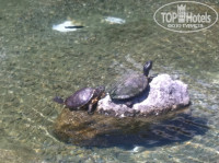 на счет еды, её очень много и она разнообразна, голодными никогда не ходили, а если сядешь возле небольшого прудика, то можно заметить как плескаются рыбы, подкармливали хлебушком их), так же на территории отеля есть фламинго, черепашки и много другой живности.