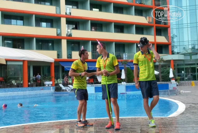 Анимация неплохая. Мальчишки и девчонки старались как могли. Но очень молоденькие. Мне казалось, что местами им сложновато именно из-за разницы в возрасте с отдыхающими. Но, как я поняла, для Болгарии это была хорошая анимация. Начиналось в 10-00 с песенки Джамбо, которая звучала в течении всего дня периодически и которую к концу отдыха знали почти все наизусть )) Вечерние программы слабенькие, неприхотливые, эдакая самодеятельность, но все же лучше, чем ничего. Отдельно спасибо Нику и Сергею.