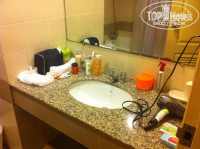 В номере пахло сыростью, но со временем мы привыкли. Был сезон дождей, влажность была сильно высокая. Вещи не высыхали на балконе. Кондиционер работал не на всю мощь, поэтому особого холода нам не светило. Сейф работал исправно. Нас было трое, а номер был рассчитан на двоих. Нам принесли кровать-раскладушку. Спать на ней можно было, но вот всю эстетику номера это портило. Номер чистенький, исправно убирали, мыли пол и меняли постельное белье с полотенцами. Соответственно, чаевые мы тоже оставляли на кровати. Живности всякой не было, за исключением одного случая, когда в мусорке осталась пустая баночка кока-колы. Муравьи тут же от куда-то приползли. Но от них мы избавились сразу, как только банка была отправлена за дверь номера. Телевизор показывал все каналы, но мы особо не нуждались в нем. Розетки стандартные, так что никаких переходников не понадобилось. Что касается санузла-вода была, напор хороший. Ванная тоже чистая была, без всяких ржавчин. Правда нет геля для душа, шампуней и зубной пасты. Есть только туалетная бумага.