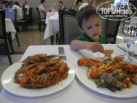 Блюда на обед и ужин перечислять можно долго, очень много разного мяса, всегда есть какая-то рыба (дорадо, сибас, форель, морской окунь и т.д.), овощи. Всегда есть вкусное пюре, по 3-4 вида макарон, рис, несколько раз была гречка. На ужин готовят много мяса на гриле на улице. Я очень люблю морепродукты - креветки мы застали 1 раз в день прилета на обед в виде холодной закуски и 1 раз на ужин в горячем виде. 1 раз были устрицы, но по традиции внутри рис, не вкусно. Несколько раз были мидии. Ну и почти все ужины у меня состояли из раков. Один вечер их жарили и внутри, и на улице - попадались очень больших размеров, супер! Пару вечеров жарили только внутри, уже гораздо меньше. Ну и еще несколько дней были раковые шейки - и в холодном виде, и в горячем.