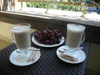 На завтрак: свежевыжатый апельсиновый сок, выжимают нон-стоп, всегда хватало. Ну и стандартный набор для завтрака - яйца во всевозможных видах, оладьи-блинчики, сосиски, выпечка, сыры-колбасы и многое другое. Из минуса - каша была только быстрорастворимая. Обычных нормальных каш не было вообще. Был отдельный холодильник с йогуртами в пачках (детские и взрослые), пюрешками детскими.