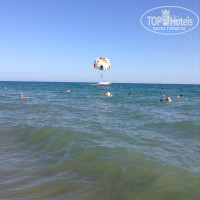 Пляж песчаный с камушками, свободные лежаки, разносят напитки. Море с утра спокойное, к вечеру набегали волны. Но и то , и то нам нравилось, особенно на мосту который прыгает на волнах. Теплое море, и не большая глубина, детям самое то .