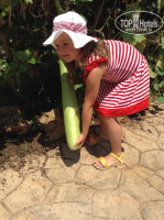 Территория просто замечательная , огромный сад, растут фрукты, огромное количество цветов, растений, прямо вдоль дороги растут овощи - перцы, кабачки, баклажаны, есть Био-сад, с кукурузой, помидорами и подсолнухами. Огромные кактусы и все очень зеленое. Куча живности, черепахи , коты, белки, кролики, гуси, ящерицы, разные диковинные птицы.