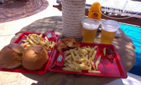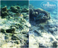 Пляж большой, чистый, много свободных лежаков, зонтики...все бы неплохо, но... море только с понтона, а там сильное течение, плавать быстро устаешь, и вообще все время был ветер волны и часто понтон был вообще закрыт...приходилось наслаждаться морем по колено с берега, либо же бассейном. Порадовало море в плане видового разнообразия рыб, обязательно берите с собой маску и ласты и наслаждайтесь подводной красотой!