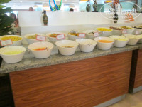 На обед и ужин всегда была пара супов, один вид рыбы, курица в разных видах, овощи в разных видах - сырые, тушеные, вареные и т.д. Из фруктов - яблоки, апельсины, мушмула, дыни, арбузы, сливы.