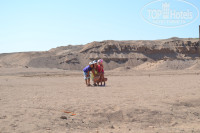 Прилетели мы ближе к вечеру. В аэропорту стоял человек с табличкой, мол все туристы Одеон будьте любезны проходите прямо к стойкам. Мы, как и все, сначала толпой баранов прямиком направились туда, узнав у впереди стоящих, что очередь за «хлебушком» по 27$ решили оглянуться вокруг, т.к. я знала заранее, что где-то прячется человечек, который продает за 25. Так вот, то самое заветное окошко находится сразу у входа слева, поэтому человек от Одеона стоит у входа, чтобы сбить столку людей, при чем там нет никакой очереди, а все стоят там, где по 27. Кстати, обязательно под рукой пусть у вас всегда будет своя ручка, она вам еще не раз пригодится. Образец заполнения визовых бумажек нам дали еще в агентстве, где покупали путевки, поэтому мы спокойно все написали сами, отдали дяденьке, который смотрит только наличие той самой наклейки за 25$, а все бумажки, над которыми потеют люди, не зная где и что написать, с успехом бросал в мусорное ведро. Спрашивается – ЗАЧЕМ? От аэропорта до отеля примерно мин 30-35. В автобусе гид дал заполнить анкеты. В отеле мы были около 8 часов вечера, при чем было уже достаточно темно (как оказалось, в Египте темнеет рано, поэтому позднее купание отменяется). На ресепшене нам снова раздали бумажки для заполнения, муж уже был на грани, т.к. он вообще не любит все эти бумажные волокиты, поэтому всеми организационными вопросами всегда занимаюсь я. Само заселение прошло достаточно быстро. Номер у нас был аква, еще до приезда я обращалась к Алене и Юли по поводу пожеланий относительно номера, огромное им спасибо, все было учтено. Номер у нас был 5047, не так далеко от главного корпуса, на первом этаже, как я и просила. Мебель в номере (это уже не для кого не новость) старенькая, но достаточно сносная, старенький телевизор с двумя русскими каналами, старенький холодильник, но морозил дай Боже, вода в бутылках, которые находились рядом с морозильным отсеком, превращалась в лед, кондер освежал тоже исправно, почти так же как той самый морозильный отсек (кондер, конечно можно регулировать и мы это всегда делали, но почему-то наш уборщик после своего ухода упорно ставил на 15 градусов, т.е. мы вечером ставим на 20-25, он нам утром на 15 и так каждый день мы соревновались кто кого, пока на 12 день кондер сам не плюнул на нас всех, т.е. потек, но все быстро устранили). В номере у нас был балкон с выходом на улицу, там было два плетеных кресла с подушками и стеклянный стол. Я обратила внимание на то, что на других этажах стоят пластмассовые стулья и стол. В номере у нас убирались каждый день, конечно не генеральную уборку делали, но вполне сносно. Однажды мы вернулись в номер и как раз попали на уборку, так вот я сама лично видела, что полы все-таки моют. К номеру особых претензий нет, не королевские хоромы конечно, но и не «хлев» как многие пытаются уверить.
