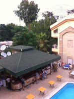 питание хорошее,на завтрак яичница,вкусные оладушки,джемы разные(очень понравился из роз),йогурты,оливки,маслины,арбуз,яблоки,и т.д ,вообщем разнообразно,на обед каждый день разное горячее;салаты,в принципе,одни и те же и не особо..но всегда есть овощи,можно самим скомбинировать,из фруктов арбуз и дыня;на ужин те же салаты,но горячее тоже каждый раз разное.Голодным никто не останется!Хозяева отеля,кстати,едят вместе с постояльцами.Понравилось то,что ужин происходит у бассейна при свечах,и при ненавязчивой музыке.
