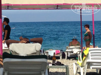 Пляжа собственного у отеля нет!!!Мы ходили на Сальса бич,два шезлонга 4$ ,от отеля возят на пляж на автобусе по времени.Там подешевле 2$ за два лежака,но он далеко и вечером набивается в автобус столько народу что ехать нереально!Еще автобус периодически ломается.Внимание: на пляже пить и есть свое запрещено!!!Ходят прям из рук вырывают,а в ихнем баре пиво 5$,еда вообще сумасшедшие деньги!