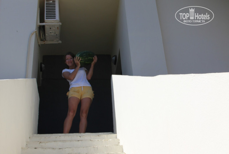Отдыхали 2-мя семьями. Признаюсь честно, такого ужаса я еще не встречала. Мы знали что роскоши не будет, но что первые 2 дня это превратится в плач у детей с мольбой остаться спать в машине, ни кто не думал. Начну с номеров, то что у них вся мебель старая- перестарая, шкаф-без единой полки, зеркало,тумбы и стол со стульями на балконе как будто их нашли на помойке и покрасили и все это освещается всего одной дохленькой лампочкой.2 Кровати и 2-типа раскладушки, одна из которых подпирает дверь балкона и стоит как отшельник где то в закутке. Ужасно, что спать на них не возможно, они какими то палками упираются в спине, а что до подушек - это и в правду что то внутрь сложенное, твердое, даже не на всю наволочку, а так наполовину, остальное подвернутое.Я спала на своей руке.Ванна -это отдельный сюжет. Чтобы попасть к раковине надо обтереться об унитаз-это раз, стоит поддон как в больницах, у порога-это два, крышка унитаза бьет по спине когда садишься(мы ее прицепили этикеткой от чемодана)-это три.А что воды не бывает-это четыре.Ни унитаз смыть , ни домыться -НЕВОЗМОЖНО! А на второй день забрали у нас и ту раскладушку которая подпирала балкон, вообще выбила нас из колеи. Когда поинтересовались куда же дели кровать, сказали"Ну другим она понадобилась".А то что мы брали путевку на 4-ых вообще ни причем.Причем сдвинуть две кровати- не вариант, между ними образуется большая щель.Лично мы ходили по полу в уличной обуви, потому что не было чувства чистоты и уюта. Еда однообразная,есть и съедобная, но не всегда, арбуз нарезают так мелко, что подолгу приходится стоять и набирать его,да и есть такую кашу как то не очень. Отель находится в пустом месте, рядом нет ничего,кроме пляжа через дорогу.Да береговая линия не очень, ну вода отличная.Короче если приобрели билеты -берите машину и только на ночь приезжайте.Если еще присматриваете -лучше куда нибудь в другое место.Кстати на наши просьбы пересилить нас ,кормили только обещаньями.Поэтому фотки не могу показать,потому что такое место стремно было фоткать ,да и зачем, для памяти что ли? Хорошо что мы уже дома!!!Там еще ужасно штукатуреные кривые стены.