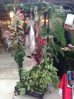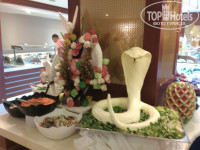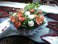 Обед и ужин прекрасный , на уровне любой "пятёрки"( но не для тех кто приехал искать в турции свинину, чернила каракатицы и т.п.). Всегда на выбор есть мясо птицы, рыба, всегда что-то жарится у бассейна, проверяйте. Основные блюда меняются каждый день, конечно, они повторяются дня через 4-5. В бар в столовке всегда очередь за бухашкой. На обед и ужин старайтесь приходить либо к началу либо через час, иначе при полном загрузе отеля будете искать места. В день отъезда в воскресенье отель устроил реальный рыбный пир: были подвешены "торийские рыбы" (так было написано в описании, на вид похоже на тунцов) длиной полтора метра, с них срезали филе, тут же нарезали на стейки толщиной 1,5-2см и жарили на решетке. Тут же готовили форель, сардину и еще что-то. Причем после того как рассосалась очередь голодных россиян можно было спокойно есть всю эту рыбу пока не лопнешь. В Европе такой ужин вышел бы в круглую сумму. Лично мне в столовой не хватало только айрана, который был на пляже и у бассейна, в столовой почему- то не было. Фруктов достаточно: арбузы, дыни, яблоки, сливы в любом количестве.