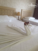 Приехали рано рано по утру. И тут начинается цирк с нашими истерично- недовольными туристами. Из автобуса в этот отель вышли несколько групп отдыхающих. Сдали документы на ресепшене, получили браслеты и инфу, что официальное заселение в 14-00. Мы спокойно переоделись, прогулялись, позавтракали и пошли загорать к бассейну, периодически узнавая на ресепшене как обстоят дела с заселением. Часам к 10 большинство приехавших с нами туристов получили ключи от номеров. Две дамы последние заистерили и начали кричать: "Почему всех уже заселили, а нас нет? Срочно вызывайте ООН, ОМОН, ОБСЕ и пр." (Обратите внимание что время было около 10, отель заселяет в 14). На что им администратор (кстати сын владельца отеля) ответил: "Я хотел лично вас проводить". Вот и думайте как к этим людям будут относиться. Да, кстати, отель явно ориентирован на русскоязычных туристов, весь персонал, кроме уборщиц номеров и уборщиков ресторана, разговаривают по русски.