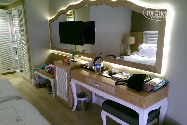 1. Номера чистые, мебель не сказать новая, но в довольно приятном состоянии, хорошее обеспечение: начиная с "мыльных" принадлежностей до мини швейного набора, спонжа и ложки для туфлей, предусмотрена даже пилочка для ногте. Имеются кондиционеры. Ежедневная уборка, хотя иной раз небрежная (пару раз не мыли пол - песок, принесенный с пляжа так и остался лежать), постель и полотенца белоснежные. Имеется бар (напитки, пиво, шоколад и т.п.)