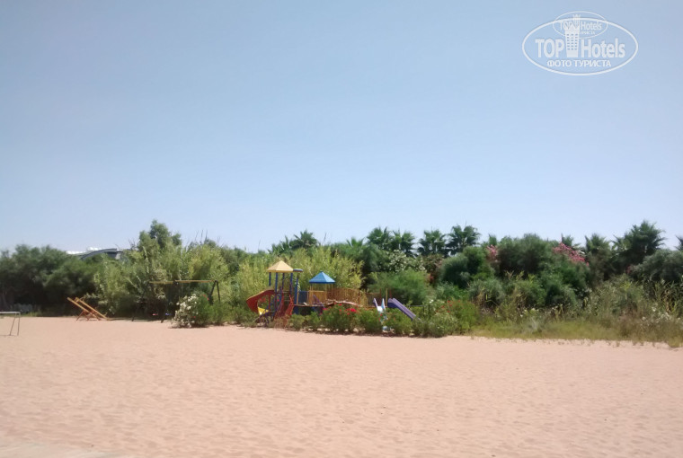 К плюсам отеля хочется также отнести детскую площадку. Обычную детскую площадку, которая стоит в любом российском дворе - нормальная горка, нормальные качели, скамейки. Но для средней руки турецкого отеля это большое достижение, серьёзно. Есть даже ВТОРАЯ детская площадка, на пляже, что звучит вообще фантастикой.