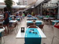 Выход из этой ситуации один: ужинать надо только на улице. Перед рестораном выставлено некоторое количество столиков, где шанс скопытиться от теплового удара заметно ниже. Но надо понимать что не вы один будете такой умный. А также, что наглость - второе счастье, тагил - рулит и прочие нехитрые жизненные принципы простых русских туристов. Короче, чтобы оказаться в числе счастливчиков, придется играть по их правилам. Даже если вы считаете неприличным раскладывать с утра пораньше на козырных лежаках полотенца чтобы прийти к обеду или занимать три очереди сразу и бегать из одной в другую с криками "вас тут не стояло". Либо становитесь быдлом, либо ужинаете в а-ля карт за 5 баксов с человека, третьего не дано.