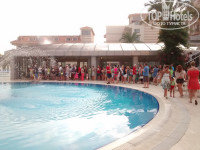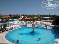 Об инфраструктуре. Водные развлечения - пожалуй, единственная жемчужина отеля. Бассейнов четыре: огромный главный, поменьше с мостиками, детский с маленькой горкой, бассейн при больших горках. Горки отличные. Есть еще пятый, крытый, но он сейчас не работает и почему-то заставлен цветами в горшках. В больших бассейнах есть несколько закутков-лягушатников с разной степенью уклона или ступеньками, где резвятся дети. Один из них расположен у пул-бара, очень удобно распивать кофе или чего покрепче, при этом не выпуская детей из вида.