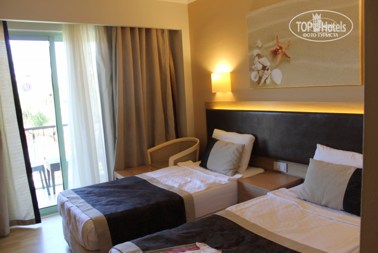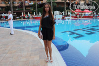 Всем привет!Прежде чем ехать прочитала кучу отзывов.Ездила с мамой!С 17 июля по 27 июля.Поэтому пляж был в приоритете.Когда купили путевку,то появилось куча ужасных отзывов,очень расстроилась,но потом решила,что будет!)))Ездили от тур оператора Бриско,летеле его самолётами Metrojet.Время было идеально,вылетали в 4.15 так что в анталии были уже в 7.25.И обратно у нас еще плюсом пол дня было,ничего не украли,а даже увеличили время прибывания ( брослеты не сняли,можно кушать и отдыхать.Весы для багажа бесплатно!)Ехали чуть больше часа и это из-за того что была остановка в магазин(((там проторчали не 15 мин. как обещали ,а все 25 мин.,так что если бы не это ,то за 50 мин.доехали бы.п.Чолаклы очень зеленый по сравнению с первыми отелями ,которые мы проезжали.Приехали в отель где то к 10 и на удивление нас сразу заселили,хотя на ресепшене много кто ждал номера,было очень удивительно потому что отзывы начитались и уже морально готовы были ждать до 14.00.Чемоданы нам довезли.Заселили на 2 этаж(4308),но по факту 3. Окна выходили на дорогу,это жаде хорошо,не солнечная сторона и шума от бассейна больше,чем от проезжающих машин.Номер чисты,новенький,не большой,но нам это и не важно,в приятных теплых оттенках.Да еще нам комплимент от отеля было:бутылка вина и тарелка фруктов и пляжная сумка с косметичкой с названием отеля)))У нас потом спрашивали как мы ее получили)))не у кого из русских их не было.Я единственное на этом сайте в бонусы от отеля заходила и нажала на все,что можно,может это сработало не знаю.Кто нибудь может попробует,а может немцев хотели заселить,а они отказались не знаю)))у нас такие с мамой предположения были.По плану был хамам.но когда девушка Марина озвучила цену в 45 долларов за 1.15 и + 10 мин. в подарок если в течении 2 дней придем,мы были в шоке.Короче пыталась всячески втюхать, ее край была 40 баксов эконом вариант.На майских праздниках были к стороне Кемер и там 25 баксов было 1.45 по времени,конечно не сезон еще был,но мы нашли в соседнем тогда 20 баксов на двоих.И здесь сходили на соседний базар и купили хамам за 30 долларов полтора часа и были довольны,хорошо все сделали, отвезли и привезли на такси!Еще Марина начала хаить нашего тур оператора,что он будет отговаривать от ее хамама....они нам даже такого не сказали)))с ее стороны очень некрасиво! Тур оператор отличный,купили помуккале за 70 баксов на человека,однодневная,5 часов ехать,но даже не устали,я за маму переживала,но устать не успевали.Автобус был как самолет,его номер можно даже не запоминать было,один такой был)))приехали до обеда поэтому еще было не так жарко,в бассейне Клеопатры не брали билет,нам сказали ребята из бриско,что нет смысла вода вся одна и также и оказалось правдой,купались в белых бассейнах)))единственное если не берешь Клеопатру,то шкафчик не продают для одежды и пришлось с сумкой идти,но это мелочи.Бассейны белоснежные)))Вернемся к отелю,к морю идти минут 5 и это даже хорошо,пройтись по красивейшей улочки в цветах,проходишь наш ресторан из него обалденный вид на море,можно на обед о основной не ходить,море как парное молоко,можно не вылазить,пляж супер,лежаки всегда есть,матрасы приносит мальчик или сам берешь,единственный минус была страшная жара,а деревянная дорожка до моря не доходила и пока добежишь до моря ноги обжигает песок и шлепки не очень спасают,ребята поливают водой песок,но не пом
