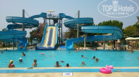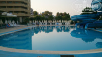 Месторасположение удобное, находится в начале променада, протяжённость которого 1,5-2 км направо от отеля. Завозят в отель первым, забирают последними. Минус в том, что территория и пляж одна на два отеля: Селект и Инжекум. В августе оба отеля были переполнены (реально видел сетку заполнения номеров на рецепции), поэтому везде муравейник… народу….(мнрго в общем везде). Есть водные горки, несколько бассейнов.