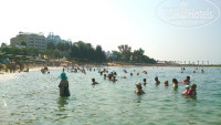 Больная тема. Само море – ГРЯЗНОЕ. Купаться в относительно чистой воде можно было до 8-00 утра, затем приходили люди, начинали плавать катера, поднимая муть со дна. По поводу труб скажу, что они уходят далеко за лагуну, за флаг (плавал, нырял, видел) и выбросы идут в открытое море, а муть - это песок и плангтон с камней. Видел пару раз черепашат рано утром, но в грязной воде они не живут, уплывают. Рыбки плавают обычные для Средиземного моря, их много, я ловил рыбу на самодельную донку, заплывая с маской к камням, насадка - колбаска, кукуруза, хлеб. В море много больших камней, осторожнее, можно серьёзно покалечться (я сломал палец на ноге, споткнувшись о камень). В бухте совсем отсутствует течение, вода стоячая, как в болоте, поэтому она иногда попахивает тиной и становится зелёной после того, как море перебаламутят сами отдыхающие. Единственный плюс пляжа то, что он песчанный, заход в воду более-менее, хотя не мешало бы сделать понтон, как у соседнего отеля. Детям будет комфортно, т.к. глубины сразу не большие. ЛЕЖАКОВ на пляже катострофически НЕ ХВАТАЕТ, так как бухта узкая, в ней находится шесть крупных отелей. После 8-00 найти свободный лежак не получится. Мы едем отдыхать, хотим релакса, хотим выспаться, а тут приходится вставать в 7-00 и «чесать» занимать лежак. Поверьте: мало кому из отдыхающих это доставляет удовольствие, и люди тут не при чём. Люди именно ВЫНУЖДЕНЫ занимать места: ни кому не хочется потом по жаре мотаться и искать, где кинуть свои кости. Рядом пляж отеля Руби Платинум 5*, так он чище (песок насыпной) и мест полно. СЧИТАЮ, ЧТО ЭТО - ПРОБЛЕМА ОТЕЛЯ!!! Вы же считаете себя «пятёркой». Так сделайте не два, а три ряда навесов, поставьте ещё 200 лежаков (а так, как килька в банке получается, лежаки стоят столь плотно, что невозможно пройти между ними к морю), засыпьте бухту песком в конце концов (как это сделал Аска джус ин бич). Сделайте небольшой широкий пирс, уберите речку-вонючку.