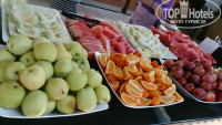 МЕСТ в столовой недостаточно. Стоит задержаться минут на 10, и будет проблемно найти столик. ХОДИТЕ ОБЕДАТЬ ПЕРВЫМИ, иначе рискуете остаться без фруктов, в салате уже успеют поковыряться руками детки, да и очереди будут ещё больше, чем если прийти за 10 минут до начала трапезы. Обед и ужин: мясо, рыба один-два вида, макароны или спагетти, рис, иногда картошка, фаст-фуд разный и выпечка (для Турции это вообще ниже плинтуса, выбор маленький), вино белое и красное ужасное и кислое, пиво сносное, остальное не пробовал. Из фруктов арбузы, яблоки, аппельсины, грейфрукты, иногда были груши, виноград, черешня.Один раз давали королевские бананы, так дети чуть не подрались, хватило не всем.
