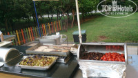 Завтраки стандартные, как и везде в большинстве отелей. Ни чего выдющегося отметить не могу. Но это же опять, UAL, могли бы и свежевыжатые соки давать. В обед есть что выбрать (мясо, курица, индейка, гарниры, суп, гриль, пару салатов, фрукты). На ужин то же что и на обед, только выбор побольше. Мне понравились шампиньоны на гриле, мясо на гриле бывало не плохое. Ещё с 11-00 до 17-00 у бассейна работал бар с закусками типа снеков, пекли лепёшки. В общем, всегда можно что-то для себя найти.