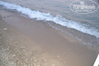 Пляж для такой толпы народа маловат. Лежаков откровенно не хватает, поэтому они есть еще и на газоне под соснами. Плюс пляжу - тенты над лежаками, а не зонтики. Пирс большой, с подушками, на которых можно поваляться. Заход - камешки - галька.
