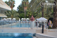Территория в зоне бунгало большая, ухоженная, чистая. Очень хороший большой бассейн с душем и туалетом. У бассейна много лежаков. Вечером, после половины пятого загорали у этого бассейна, у моря было уже прохладно и ветрено. Есть свой бар, но работает только днем с 12 до 16. В баре только закуски, салаты, фрукты, спиртное, чай, кофе и напитки. Если лень в обед идти в главный корпус, можно пообедать и там.