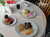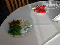 Обед и ужин-очень маленький выбор. Салаты не очень вкусные, дают один вид мяса и рыбы. Впечатление после питания осталось двойственным. Иногда оставались в полном восторге, когда давали морепродукты(5 раз) и вкусно приготовленное мясо, иногда есть было нечего. Очень вкусная выпечка и сладости, много давали фруктов. Очень вкусное мороженое, да еще и с сиропом. НО: Возмутило то, что вся посуда со сколами!!!