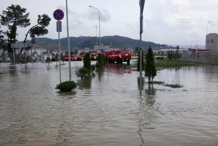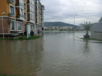 МОРЕ. Крупная галька, заход неудобный, медузы. Первые дни волн почти не было, мы хорошо поплавали. 1 день море кишело медузами, на следующий день пошли ливни и штормовое предупреждение с угрозой образования смерчей, наводнение в Адлере и Сочи. Жаль, что узнали об этом по новостям, а не от представителей отеля. В этот день хотели уехать в город с ребенком и не знаю как бы мы возвращались. Затем купаться в море было нельзя из-за угрозы инфекции. Волны сильные, сшибали с ног на камни. За 100 руб. в сутки аренда лежака. За зонт отдельно платить, сколько не помню. Брали только лежаки.