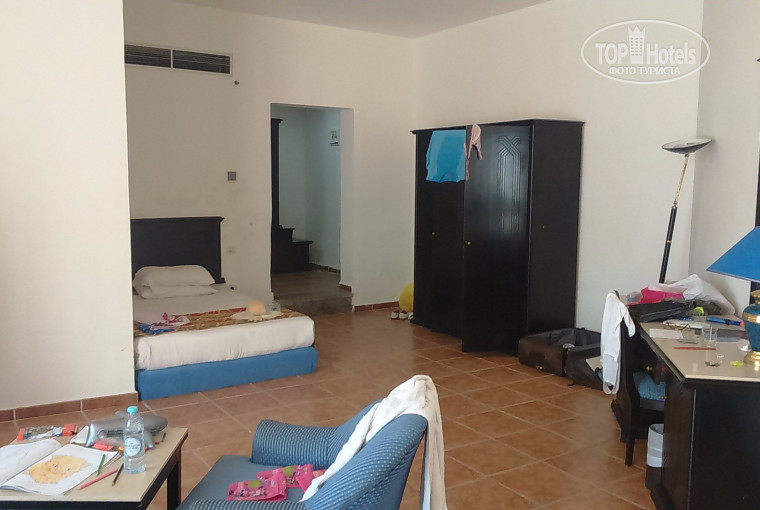 И о территории. На всём лежит печать запущенности. Такое впечатление, что из отеля просто выкачивают деньги, ничего туда не вкладывая. Много погибающих, засыхающих пальм и других растений, которые без полива в земле Египта расти не могут. Заброшенные стройки и старые, брошенные корпуса окончательно портят общую картину.