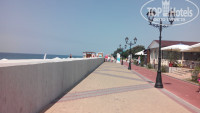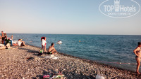 Идти до пляжа 10 минут быстрым шагом. Галька очень крупная, зато море и пляж чистый. Я загорала на коврике и сверху стелила полотенце, также продаются плавательные тапочки. В некоторых местах вход в воду сложный, т.к. из-за волн он становится покатым. Почти каждый день приплывали дельфины и уточка. Вдоль набережной можно купить кукурузу и другие вкусности.