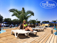 Отдыхали вдвоём с сестрой в данном отеле.Нам очень понравилось.В первую очередь мы были довольны большой и зеленой территорией отеля.Так же понравилось что отель находится около моря,далеко ходить не приходилось.Море изумительное,правда в море камни и плиты,поначалу когда я прочитала даже расстроилась,ну когда купалась мне даже понравилось,было интересно плавать и добираться до них.Ещё меня поразила наглость людей,когда мы приходим на пляж и все лежаки заняты везде полотенца и никого нет главное,они их занимают на целый день и даже не появляются. Питание было вкусное и да соглашусь даже можно сказать домашнее,питались 5 раз в день до отвала.Первые дни мы так наедались,что потом не могли есть и клевали как цыплятки.Особенно мне не хватало морепродуктов,их не было вообще.Если честно вино там не очень вкусное,ну лично для меня.Я пью красное,но оно было настолько кисловатое и горькое,что приходилось иногда пить белое,хотя я его вообще не пью.Ещё хотелось сказать про музыку в ресторане т.к. я музыкальная личность, добавьте побольше песен в фоновую музыку...потому что несколько песен постоянно повторяются и нас уже потом тошнило слушать их.Номера довольно скромные,обратите внимание на фен,я долго смеялась.Не очень понравился кондиционер который дул только вниз,потому что были гвозди вбиты,для того чтобы струя не менялась.От чего я была в большем восторге это от анимации и не слушайте людей, которым она не понравилась.Вика,Илона и Андреа вы просто лучшие!!!!!!!Эти люди настолько обладают обаянием и расположением,что они просто не могут не понравиться.Я безумно буду по ним скучать и вы тоже если побываете здесь.Ещё хотелось бы сказать,я была не очень довольна узнав что рядом нет не клубов не баров,поэтому компаниям молодежи здесь делать если честно нечего.Меня успокаивало,что я с ребенком и что спокойный отдых тоже нужен.Я итак неплохо веселилась,купаясь ночью в море и бассейне и вам советую!))Вообщем отдых получился замечательным и недели нам вполне хватило.Я была бы не против вернуться сюда вновь.